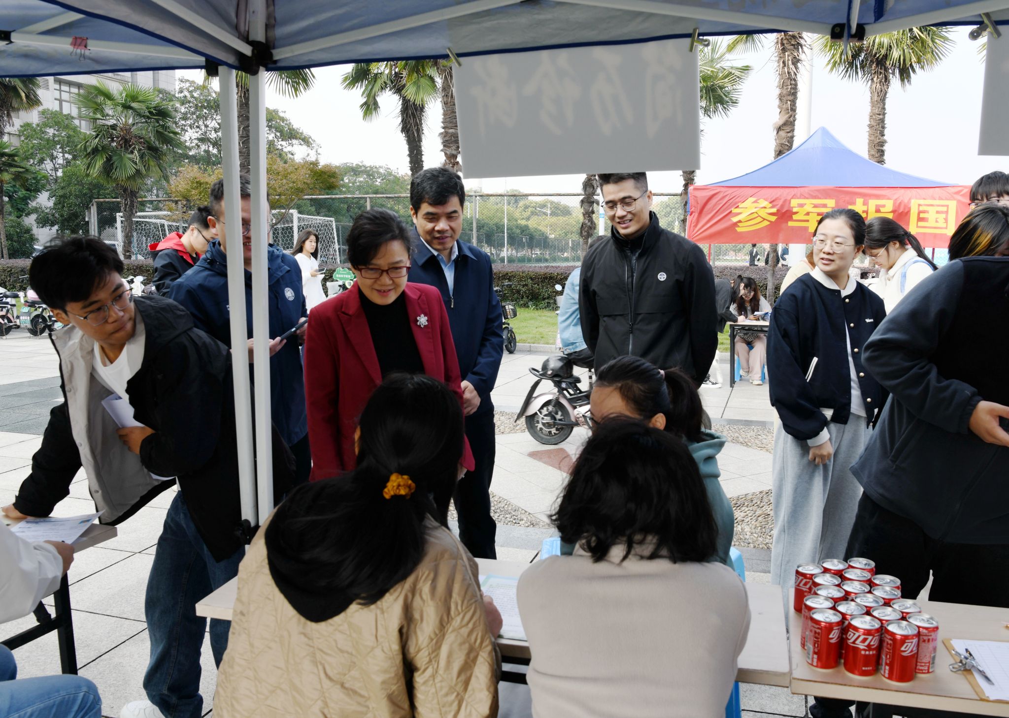 10月24日,我校在滨江校区(北区)篮球场举办2025届毕业生首场校园招聘会,来自长三角区域的122家用人单位现场提供2839个就业岗位,打响了我校2025届就业工作的第一枪。学校领导高度重视就业工作,校党委书记夏劲松,党委常委、纪委书记、监察专员王保中来到招聘会现场,与用人单位负责人深入交流,了解招聘信息并向用人单位积极推介毕业生。